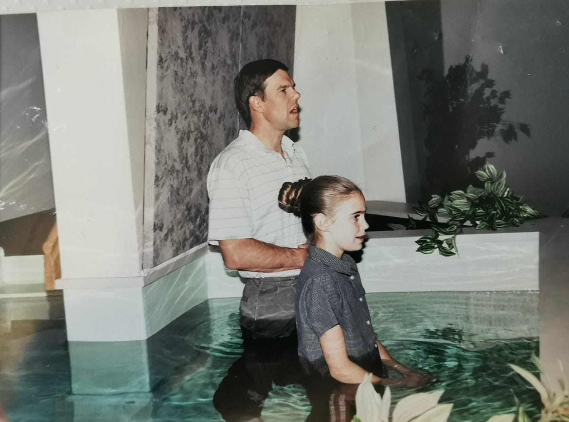 I have a professional degree in theology; if those three statements you were forced to affirm were all that was said in that so-called baptism, then it definitely wasn't a Christian baptism. I was dunked at age 14 in a regular American Baptist church and it was Father, Son, and Holy Spirit after speaking publicly that I believed in the Christian (Trinitarian) God, accepted Jesus as my savoir, and wanted to join the church. I'm none of that anymore, but yes, what you went through was a strange cult baptism. After mine I still had my own person even if I was being unhelpfully influenced by Evangelical nonsense through my teens. Then again, I was NEVER a conformist so simultaneous with my church life I was rebelling... like with my non-church high school friends. Liberation from mental colonization is the most important thing to get once you realize you've been duped, lie to, manipulated, terrified, shamed... all that stuff that that kind of religion does to people. And, I'm sorry to say but not sorry to say, but that photo of you as a little girl in that baptistry... it really bothered me, my heart was terrified for her. Yeah, go to a normal city more, like Paris, where there isn't this crazy North American Christian garbage. Just live. Free.