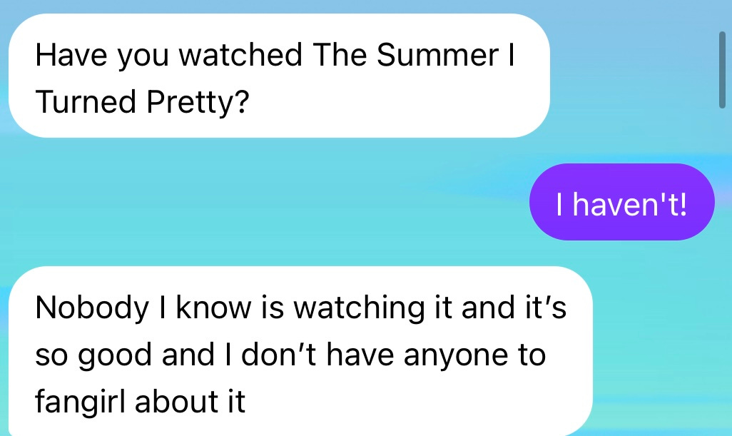 “GIRL. HAVE YOU WATCHED The Summer I Turned Pretty??”